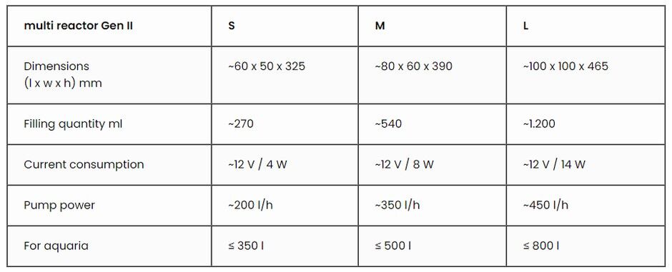 De Aqua Medic Multi Reactor Gen 2 is te verkrijgen in 3 maten: S, M, L.