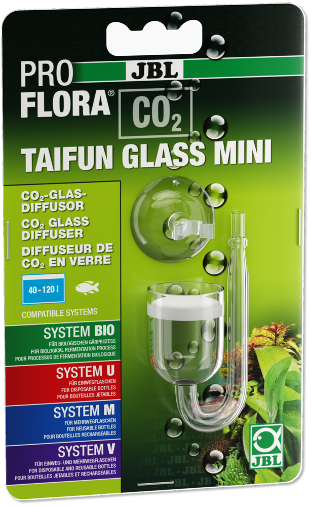 De JBL ProFlora CO₂ Taifun Glass Mini is ideaal voor kleinere aquaria, zoals nano-aquaria en aquascapes tot ongeveer 60 liter. Dit maakt hem perfect voor liefhebbers die een compact CO₂-systeem willen zonder grote, storende apparatuur. De diffusor werkt optimaal in aquaria met een lichte tot gemiddelde CO₂-behoefte, zoals beplante aquaria met mos, varens en langzaam groeiende stengelplanten. Voor sterk beplante aquaria of tanks groter dan 60 liter kan een krachtigere diffusor nodig zijn. De JBL ProFlora CO₂ Taifun Glass Mini past goed bij CO₂-systemen met een lage druk, zoals wegwerp- of herbruikbare CO₂-flessen. Omdat het een passieve diffusor is, heeft hij geen extra stroomvoorziening nodig en werkt hij uitsluitend op de natuurlijke druk van het CO₂-systeem. Dit maakt het een energiezuinige en betrouwbare oplossing voor kleinere aquaria.