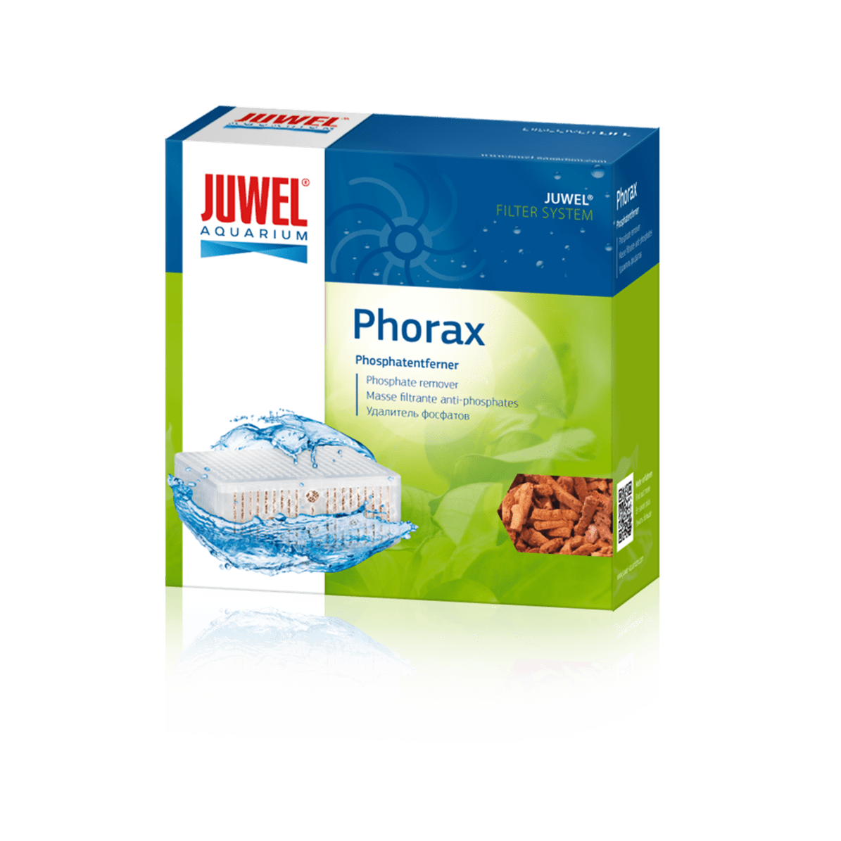 Fosfaten komen regelmatig terecht in het aquarium via het visvoer en worden op natuurlijke wijze nauwelijks afgebroken. Planten hebben echter maar heel weinig fosfaat nodig voor hun natuurlijke groei (zoet water: 0,05 mg/l, zout water 0,01 mg/l). Te veel fosfaat kan in omstandigheden een algenplaag veroorzaken. Juwel Phorax kan dit afbreken.