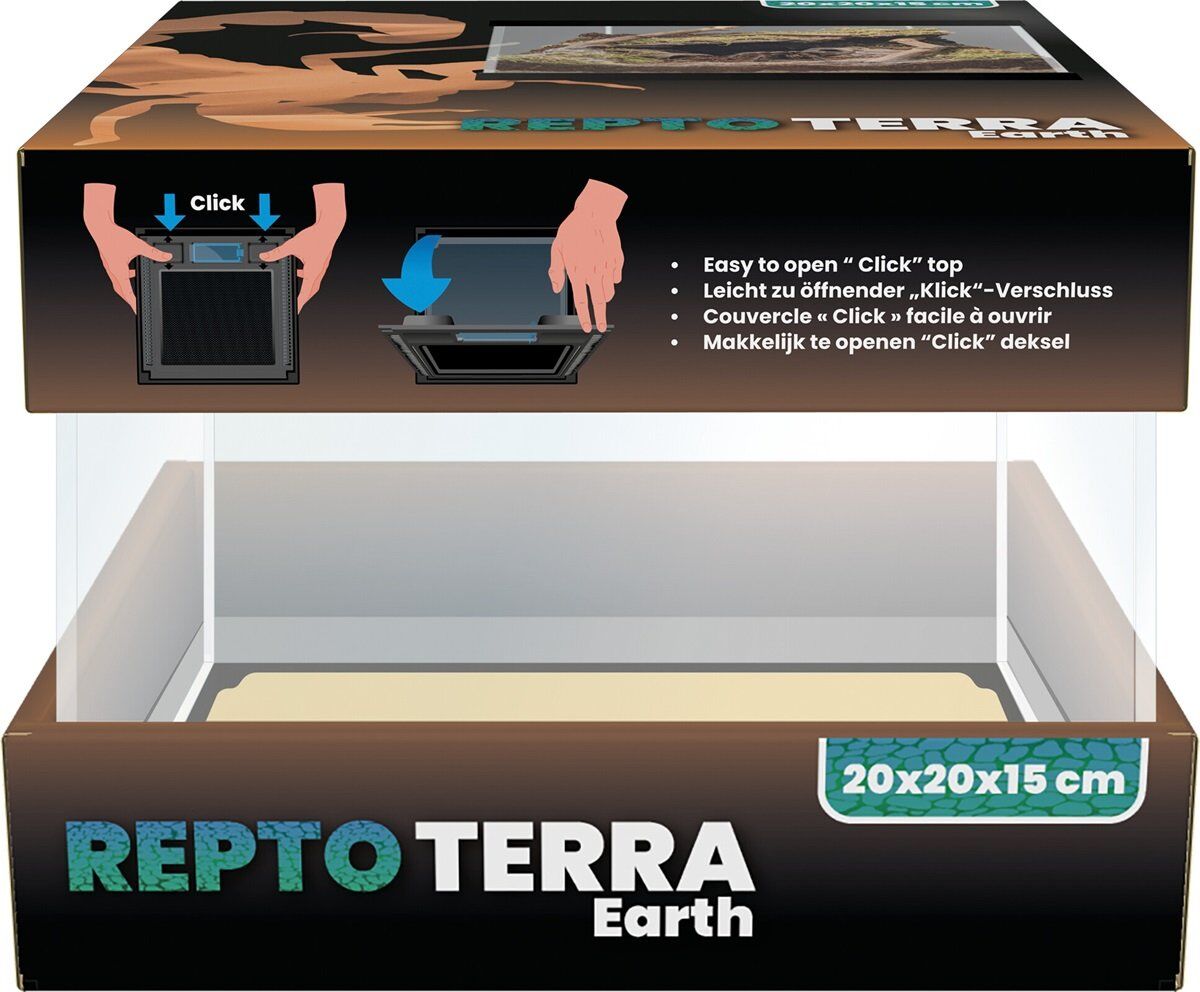 Een van de grootste pluspunten van de Repto Terra Earth is het praktische click-deksel. Hiermee opent en sluit u het terrarium eenvoudig zonder gedoe met ingewikkelde sluitingen. Dit is handig voor dagelijks onderhoud, voeren en schoonmaken. Het deksel sluit stevig af, waardoor ontsnappingen worden voorkomen. De constructie combineert glas voor optimale zichtbaarheid met duurzaam kunststof voor stevigheid en lichtgewicht gebruik. Dankzij dit slimme ontwerp kunnen ook beginnende terrariumhouders hun dieren veilig en gemakkelijk verzorgen, terwijl gevorderde liefhebbers het gebruiksgemak zullen waarderen.